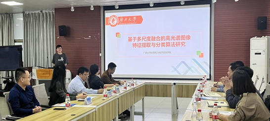 随后学院杨丽娜老师团队做了“基于多尺度融合的高光谱图像特征提取与分类算法研究”的专题报告。