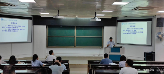 本次大会首先由学院党委副书记、纪委书记邓珍琪同志带领全体教职工共同学习《广西大学推进“清廉西大”建设实施方案》精神;然后邓珍琪同志为全体教职工作题为《筑牢反腐倡廉防线,做清正廉洁干部》廉洁教育专题党课;最后学院党委书记钟诚同志强调要求全体教职工必须高度重视廉洁教育,要将廉洁廉政教育与课程思政有机结合,做到让廉洁文化深入师生心中、廉洁理念成为共识、廉洁自律意识时刻牢记。
