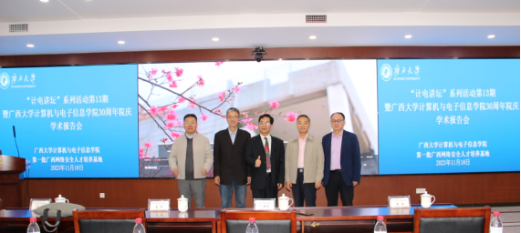 研究生会、中国计算机学会CCF广西大学学生分会共同主办的 “计电讲坛”系列活动——专家学术报告会在君武馆第二会议室进行。本次活动邀请了浙江师范大学的彭浩教授、深圳大学的毛睿教授、南开大学的王刚教授、广东工业大学的武继刚教授,分别以“大模型安全前沿技术及其应用”、“大数据泛构:度量空间通用数据处理模式”、“数据中心硬盘故障预测研究进展”、“面向神经网络计算的软硬件优化技术”为题目,开展了一场精彩的专家学术报告会。学院钟诚教授主持报告会,学院在校研究生约100人参加。