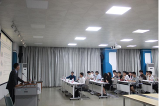 会议伊始,王智强教授给予会师生介绍华中科技大学电气与电子工程学院、宽禁带电力电子创新团队、功率半导体的纵向环节研究以及800m2国内一流的功率半导体封装集成与电力电子技术研究实验室等情况,并运用通俗的事例形象地说明电力电子技术的原理,介绍半导体材料对于电力电子变换器效率提升的重要性,讲述了半导体材料最新的发展现状以及遇到的现实难题。