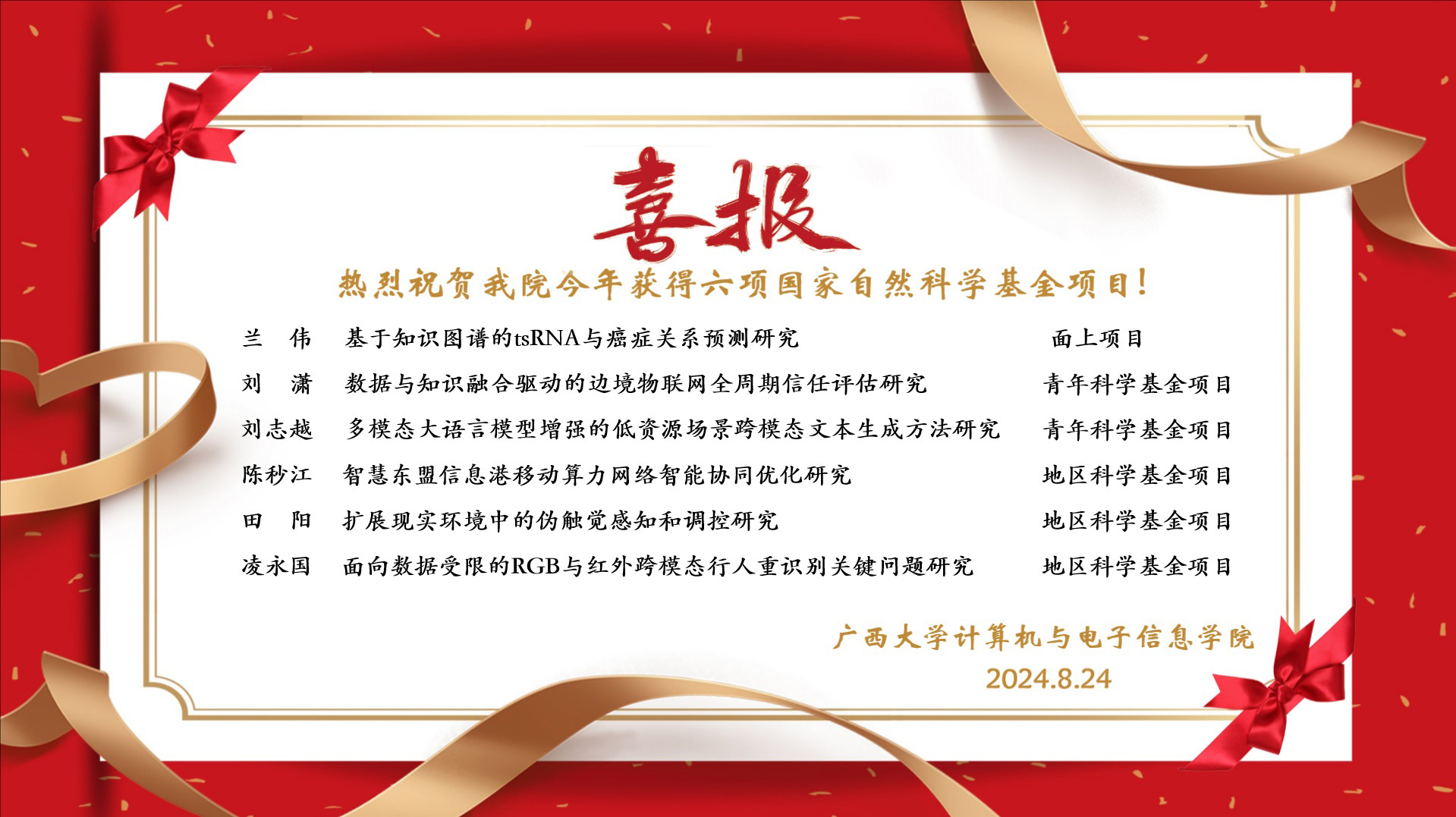 热烈祝贺网上赌博网站 2024年获得六项国家自然科学基金项目!