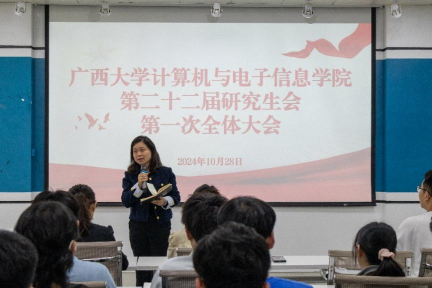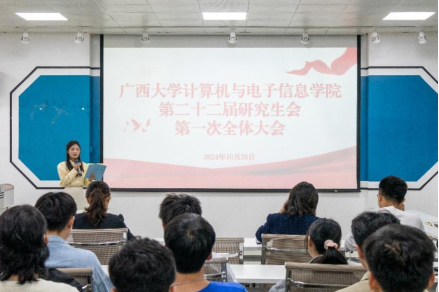 第二十二届研究生会第一次全体会议在学院一楼报告厅顺利召开。学院团委书记杨洋老师、研究生办公室秘书胡亮青老师和黎西妮老师、研究生会秘书长张星月老师、辅导员魏艳艳老师及研究生会全体成员出席此次会议。会议由研究生会执行主席出君儒同学主持。