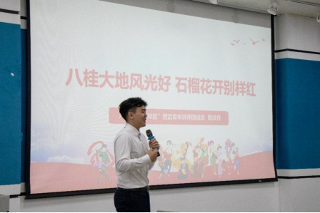 会议伊始,广西大学“00后”君武青年讲师团成员、外国语学院2022级研究生周洋舟同学作主题宣讲。周洋舟同学以“八桂大地风光好,石榴花开别样红”为主题,以人民币上的民族语言为切入点,深入阐述了民族团结的重要性,并结合习近平总书记2023年12月在广西考察期间的重要讲话精神,呼吁青年用实际行动和创新思维,将民族团结融入日常生活、学习和工作中,用心用情让民族团结之花绽放在八桂大地。