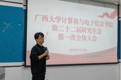 会议第三项,主席团成员出君儒同学对学院研究生会主席团分管部门情况进行简单介绍,并就近期即将开展的“学生干部训练营”等工作做出详细安排。
