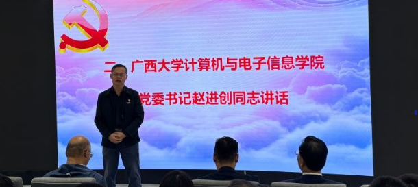 党委书记赵进创同志,广西职业师范学院计算机与信息工程学院党委书记赵域同志,以及两个党支部的党员参加活动,共同探讨如何在新时代背景下,通过党建引领教育事业的高质量发展。