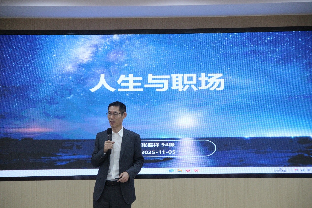 于2025年11月5日下午在学院214报告厅举办以“人生与职场”为题的讲座。本次活动邀请原华为技术合作部副总裁张振祥老师为学生们带来一场关于人生规划的经验分享。