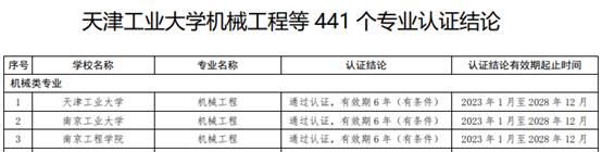 近日,中国工程教育专业认证协会发布了《关于公布天津工业大学机械工程等441个专业认证结论的通知》,网上赌博网站