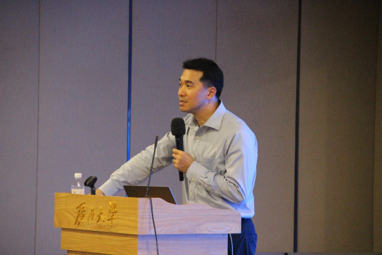 研究生会、中国计算机学会CCF广西大学学生分会共同主办的 “计电讲坛”系列活动第二期在大学生活动中心310室进行。本次活动邀请了清华大学的郑海涛教授,以“新一代人工智能的基石——预训练大型语言模型”为题目,进行了一场精彩的学术讲座。