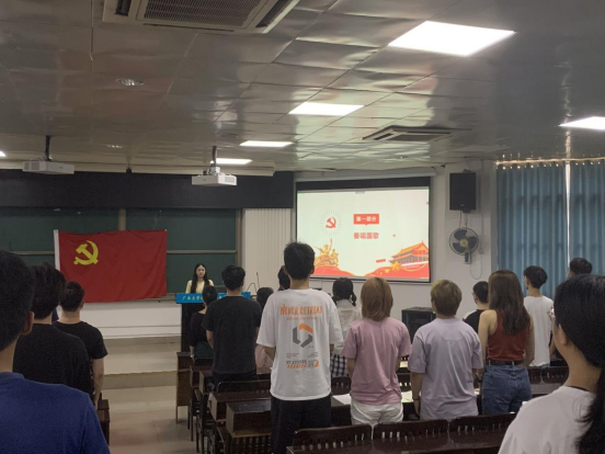 全体党员同志起立奏唱国歌