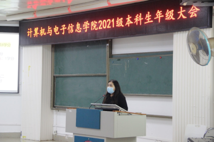 在学院214报告厅,组织召开2021级本科生年级大会。学院党委副书记邓珍琪老师、学院辅导员刘智斌老师、学院教学秘书甘瑜萍老师和罗程老师、计算机类专业213班班主任白琳老师、兼职辅导员路佳和李琳同志、以及2021级全体本科生参加会议。会议由刘智斌老师主持。